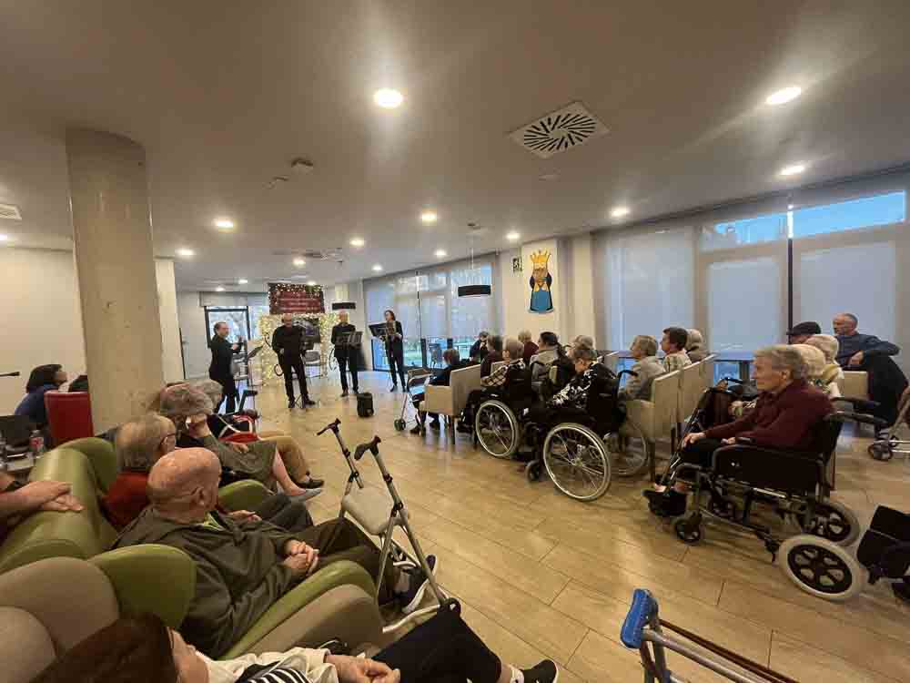 También fueron días en los que recibimos visitas muy especiales, como la de los alumnos del colegio Virgen del Carmen, con quien pudimos realizar una manualidad intergeneracional de árboles de Navidad elaborados con revistas, o la de La Rondalla, con quien disfrutamos de una actuación musical de lo más emotiva.